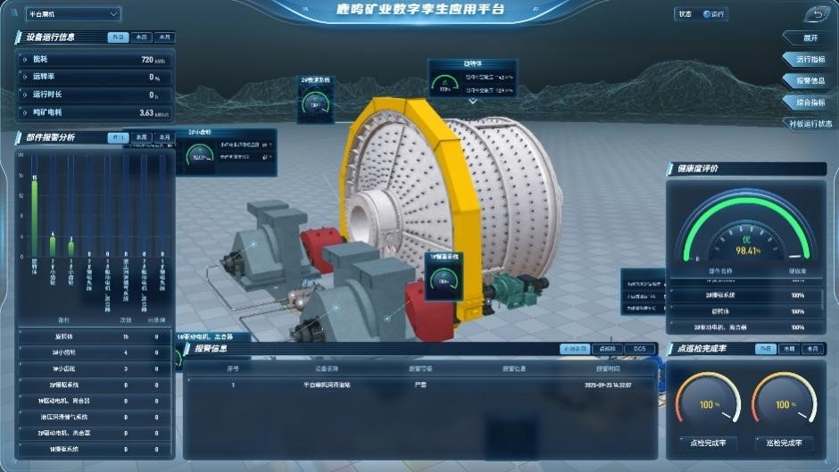 多年来,鹿鸣矿业始终将设备稳定高效运行作为生产效率提升、经济效益增长的核心基石,针对生产设备新度系数逐年降低的情况,稳步开展设备管理优化,在传承成熟管理经验的基础上,聚焦“智能化、精细化、闭环化”持续发力,推动设备管理工作迭代升级。一是智能点检迭代升级,预警能力精准提质。在2024年点巡检管理系统的基础上,今年进一步融入智能巡检机器人与智能矿山监测系统,升级多维度数据采集功能,新增振动频率、能耗波动、温度异常等关键指标实时监测模块,并通过无线传输同步至智能矿山平台,形成设备全生命周期运行档案。依托智能算法对海量数据进行深度挖掘,实现故障隐患从“被动发现”向“主动预判”的进阶,成功规避多起潜在停机风险,为连续生产筑牢第一道防线。二是闭环管控持续深化,责任落实从严从细。沿用并优化设备包机责任制,构建“数字化责任追溯体系”,将定机定人、包机到班的管理要求与数字化台账深度融合,实现设备管理责任“岗岗有标准、人人有清单、事事有追溯”。始终坚守“一切非计划停机就是事故”的核心理念,升级设备隐患消缺动态管理平台,确保问题隐患“零遗漏、零拖延”。三是精细维保精准发力,设备效能充分释放。在标准化检测保养的基础上,根据不同设备的运行年限、工作负荷、技术参数,针对性制定预防性检修项目清单,同时深化油品全生命周期管理,引入油液在线监测技术,取代传统定期检测模式,实时掌握油质状态,实现“按质换油、精准用油”,有效提升设备使用效率与综合效益。四是科学检修优化创新,生产稳定再添保障。坚持以关键设备稳定运行为核心,依托大数据分析建立设备运行状态数据库,整合使用频率、负荷变化、备件寿命、维修历史等多维度数据,动态优化停机检修周期,实现检修计划从“按周期制定”向“按状态调整”的转变。围绕半自磨衬板等核心备件更换项目,融入三维数字孪生技术,将备件更换与智能系统精准匹配,优化检修流程、压缩作业时长,有效减少停机检修对生产的影响,2025年首次投入使用数字孪生技术,缩短检修时长63小时。